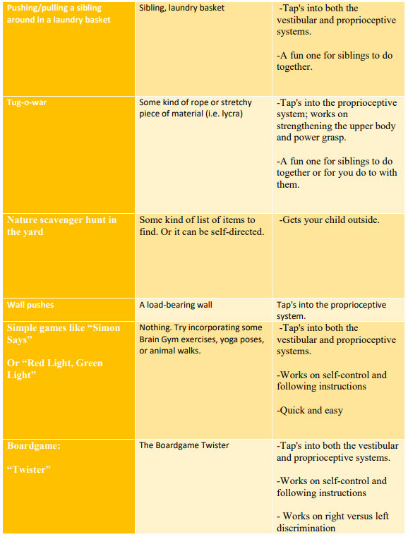 If your child has sensory processing challenges and is hopefully receiving occupational therapy services to address those challenges, please follow the specific recommendations of his/her treating OT.