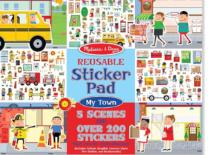 This reusable sticker pad can be used to help expand both expressive and receptive language skills. Using multiple settings in the sticker pad, one can work on categories to help build your child’s vocabulary and categorization skills (“Put the plates in the kitchen, put the toilet in the bathroom, where does the couch go?”) one to two to three-step directions (“Put the plates in the kitchen AND put the toilet in the bathroom), labeling nouns in multiple contexts, expanding utterances using the one-up rule (ex. if your child says plate, you say round plate or yellow plate”) and commenting on the many nouns and action stickers in the book.